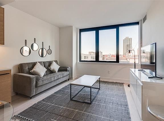 No broker fee. Available May 1st. This luxury east facing 1 Bedroom + Den unit features oversized windows with automatic blinds and Manhattan views. The residence has an open kitchen and living area with high grade Bosch appliances and a massive Thermador refrigerator, a master bedroom with ample closet space with floor-to-ceiling windows, and a cozy den which can be used as an office or guest room. Also, there is a full-sized, washer and dryer, fiber optic wiring and central air / heating. A dedicated garage parking spot is available for an additional fee. 10 Provost is a 3 year young Condo building, located in the heart of the Power House Art District of Jersey City, just steps away from shops, restaurants and PATH trains to NYC. The building includes 24/7 concierge, a sun deck, an outdoor pool, BBQ grills, and communal Chef's Kitchen. You can enjoy multiple lounges and a rooftop area which all include comfortable seating, TVs, games and spectacular views. Also included are tech-friendly, shared work spaces throughout the building and a fully-equipped fitness center with Peloton Bikes, and a yoga studio with virtual classes. Owner to pay HOA fees which includes 24/7 concierge, water, sewer and trash. Renter to pay gas, internet, and electric. No smoking in unit or building. No Pets.