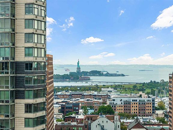 Spectacular! Views of Statue of Liberty! Amazing, new construction 1 year old building South-West facing 2BR/2BA with 1 deeded parking spot i home is located in the Power House Arts District, one block from the Grove St Path in 10 Provost St, a brand new 28-story Luxury building by Toll Brothers City Living. Home features a great open layout, Thermador & Bosch appliances, quartz counter tops, full-sized vented washer/dryer in unit, wide plank wide oak floors, Central A/C, custom cabinets and amazingly oversized windows which floods the home with light. This luxury state-of-the-art building offers residents, 24/7 concierge, children's playroom, fitness center, yoga room, offices & study, Penthouse Sky Lounge and demo Kitchen, rooftop deck on the top floor as well as a rooftop terrace with pool deck, ample seating, and a dog run. A commuters dream! Conveniently located near the PATH, Restaurants, and much more. 3D tour available