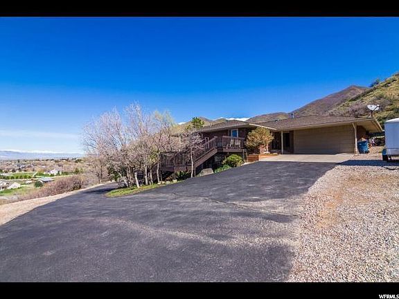 ***NEW LOWER PRICE *** Come and see this Beautiful and meticulously cared for home nestled in the hills of Mapleton. This home is surrounded by spectacular views of the mountains and valley views from every room! With sunsets you can view from your tiered deck off the master bedroom of from the lower deck in your built in hot tub. You wont be disappointed very mature well kept yard, main floor living and updated kitchen with large walk in pantry. New flooring in bathrooms. Beautiful gas fireplace in family room. Partially fenced yard with 1.3 acres bring your toys and enjoy them in your own backyard. Home is located within walking distance to the new Bartholomew reservoir and sits at the mouth of Hobble Creek Canyon and Golf Course. As well as walking/hiking trails. This property has Animal Rights. Don't miss seeing this amazing home. Call for your private showing.