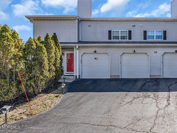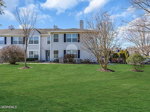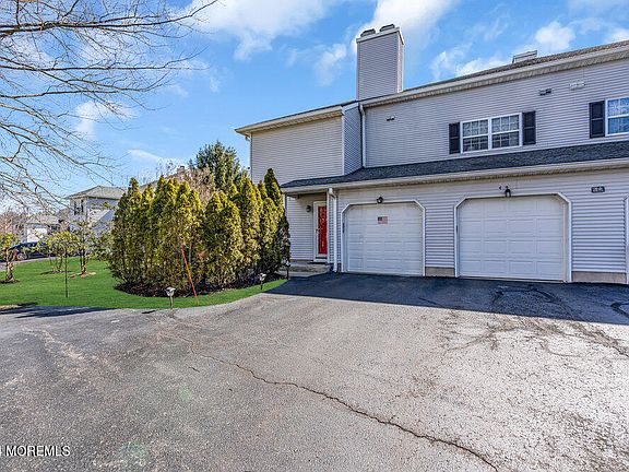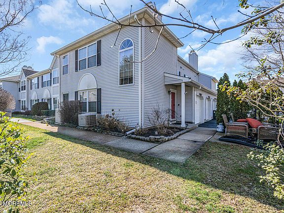 Welcome to desirable Allaire Country Club Estates.This 3 bedrm,2 full bath, upper level end unit Brighton Model is waiting for you! Home features spacious open floor plan; living room /dining rm, includes wood burning fireplace. Kitchen has custom cherry cabinets,Corian countertops with breakfast bar.Master bedroom with ample space walk-in closet plus shelving. Third bedroom includes custom cherry built-ins for office needs. Laundry Rm, new 2024 washer. Deep 1 car garage with storage cabinets. Pull-down attic access, additional storage. Home includes hardwood flooring, surround sound, mounted tv,many updates. Newer hot water heater, ceiling fans, windows. Enjoy your private patio. Close to highways, beaches,& dining.