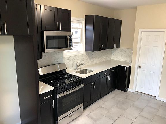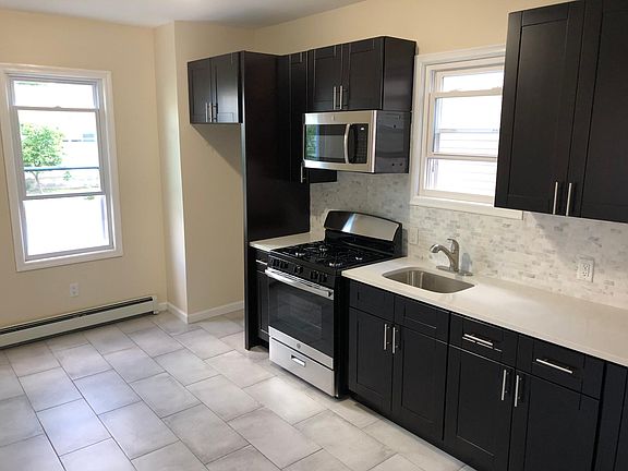 First floor in two family house. Totally remodeled, 9 foot ceilings, one bedroom, living room, dining room, bathroom, brand new kitchen with designer cabinets and quartz countertop, washer and dryer hook ups in basement. Off street parking for one car. Close to all major highways 20 minute walk to Path Station in Harrison. No pets, no smoking, background check & credit check application fee, One and a half month security.