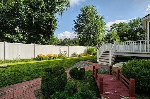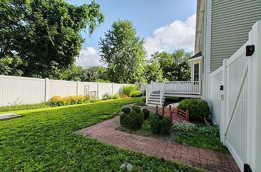 Fabulous duplex featuring an open floor plan with cathedral ceiling and gas fireplace in the living room. Formal dining room with beautiful wall moldings. Loaded with gleaming hardwood floors and tile throughout. 2.5 baths, 3 large bedrooms including a luxury master suite. Fully applianced sunny eat in kitchen overlooking a sun drenched deck. First floor laundry room washer and dryer included. Set on an amazing professionally landscaped private fenced lot. One car garage. Great commuter location, minutes to Route 3. All this within walking distance to the Post Office, Rail Trail, Library, Shops, Restaurants, Schools and more. A Great in town value! This home is in perfect condition. Just bring your furniture!!!