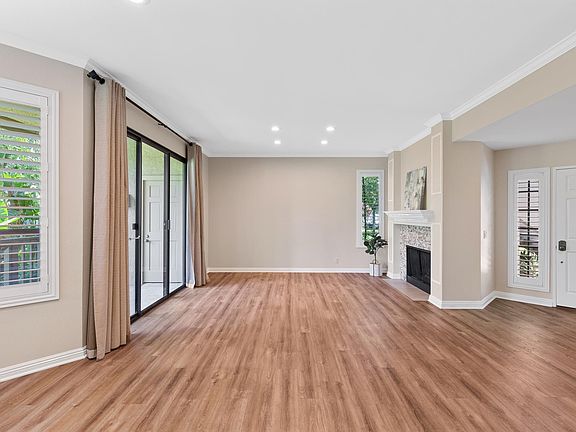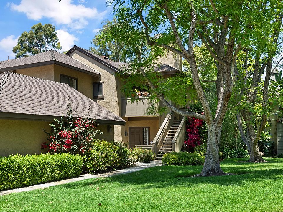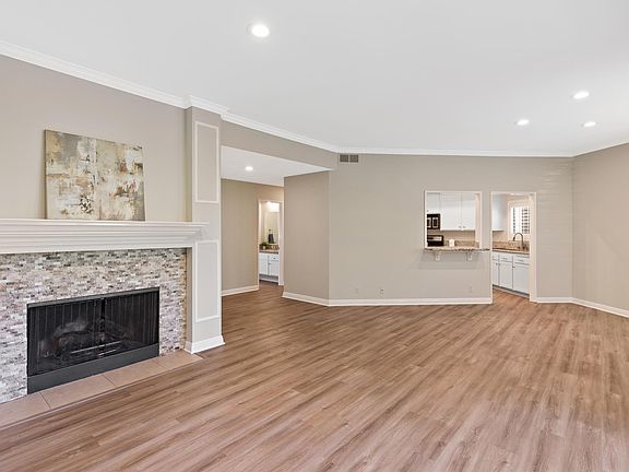 Nestled in a quaint community of just 44 homes, this fantastic single level condo offers a serene location with relaxing views of greenbelts and surrounding mature landscaping. Remodeled throughout, this popular lower Sage model is the only model that provides direct access from the garage to the house. Newly installed wood floors are in every room and are complimented by freshly painted interiors, crisp white baseboards and new plantation shutters. Offering rare 9' ceilings, this open floorplan has a large great room with stylish fireplace and an adjoining dining area which enjoy views of the beautifully manicured grounds. A darling outside patio is perfect to entertain guests or enjoy a morning cup of coffee while reading the daily news. The kitchen boasts granite counters, white shaker style cabinetry, stainless steel appliances including a gas range, refrigerator, microwave and a brand new dishwasher. The oversized master bedroom offers views of the greenbelt and has a great master bath with an abundance of closet space, remodeled vanities with quartz counters and a sleek walk in shower. The second bedroom is good sized and shares the remodeled bathroom including a tub/shower with a barn door style enclosure and vanity with quartz counters. There is lots of storage throughout and the individual laundry room includes front loading washer & dryer. Nearby community amenities include tennis courts, 1/2 basketball court, pool, spas & more. What's not to like