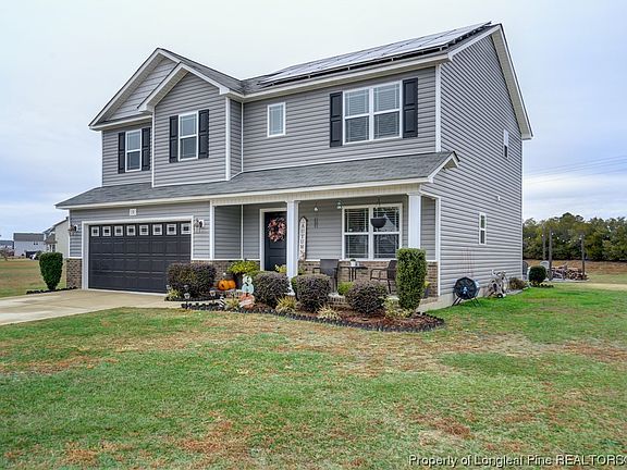BACK ON THE MARKET DUE TO NO FAULT OF THE SELLER! This open concept floor plan is PERFECT for entertaining or cozy nights at home. The first floor features a study, an electric fireplace and granite counters in the kitchen. All Bedrooms & bonus/flex space are located on the 2nd floor. The backyard is an entertainer's dream- completed with a firepit and a pergola. This gorgeous home is situated on large level lot in lovely neighborhood just minutes from I-295. This location provides easy access to Ft. Liberty and Fayetteville while still offering a rural, country setting. USDA Eligible! This home also has solar panels that will save on your energy bills!