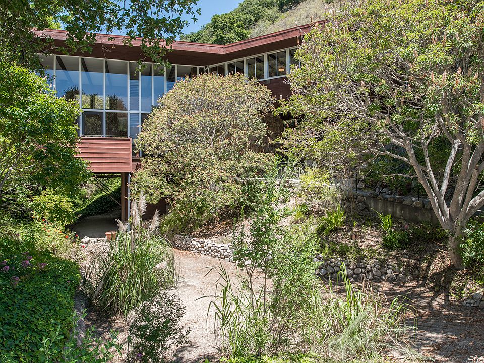 Natural stone, steel, wood and glass combine to create this dramatic Mid-Century Modern located on over an acre of land, nestled in the foothills of Carmel Valley. Designed to take full advantage of its natural surroundings, the home contains approximately 1,880-square feet of living area with two bedrooms and two and a half baths.