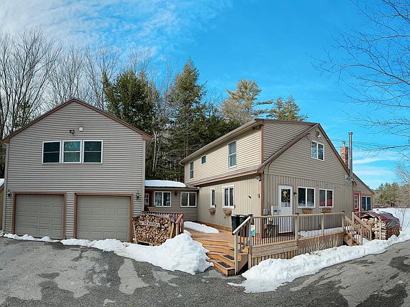 Can you smell the scent of Summer? Don't miss out on this rare opportunity to own 100 feet of private, beautiful sandy frontage on pristine Crescent Lake! Located in a quiet cove ideal for swimming, fishing and boating and only minutes from hiking and recreation. This year-round gem sits on a 1/2-acre lot and is perfect for entertaining your family and out of town guests. The main house consists of 2 bedrooms, 2 full baths, a primary bedroom with large loft area overlooking the living room, office / additional guest area, large mudroom, cathedral ceiling, open concept floorplan with unobstructed water views, spacious dining area, large deck for grilling & entertaining, a screened in porch, large basement with built-in shelving for storage and 3 workbenches! The separate flowing guest space above the garage has a separate entrance, a cozy living room, 2 bedrooms and a full bathroom. The bunkhouse has new windows, pine board, electricity and potential to be finished off for additional guest space. Recent updates to the home include new 90 ft dock, whole-house Generac generator, new hardscaping, Vermont Casting wood stove, 4 mini splits for AC, new water heater, new deck railing, new porch screens, paint and carpet. Start your Summer off right! This is a must see!