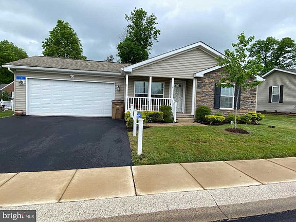 Active Adult 55+ Community, Perimeter lot 2 car garage "Sage" model many wonderful upgraded features, Columns between Living Room and Dinning Room, Buttercream Cabinets,Ceiling fans, tastefully painted thru-out,Smart Height Elongated Commodes,under cabinet lighting,Pendent lights over large Breakfast Bar, designer front screen door, 30 x 12 deck off kitchen and utility rm, to include pergola, synthetic decking on front porch, view pictures, this home is impeccable, shows like a model. Lot lease includes Trash,Snow on Common areas,Club house, gym,library, game room and outdoor heated pool, $40 per month sewer fee, Rules and Regulations apply.