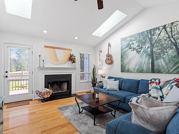 Meticulously maintained Ranch tucked away in a cul de sac in prime Durham location. It is located in the highly sought after amenity filled neighborhood of Woodlake. It features updates inside & outside! The roof/windows replaced in 2019 & siding replaced & painted in 2022 to Hardy-plank. Kitchen is perfect space for the chef in the house w/Double oven, ample counter & cabinet space w/ eat -n dining. Hardwood floors thru-out minus primary & one secondary bedroom & new bamboo floors in kitchen. Primary bedroom features vaulted ceiling & ensuite bathroom w/ dual vanity w/ separate shower/tub combo w/ skylight over tub (it opens) & generous sized WIC. Spacious & cozy family room w/ wood burning FP & vaulted ceilings w/skylights. The highlight of this home is the abundance of natural light & its ability to truly bring the outdoors in. The fully fenced backyard lined w/ trees & beautiful landscaping creates a tranquil & peaceful space. The outdoor space is perfect for cool summer nights enjoying the large deck & oversized patio. Easy access to all the triangle has to offer! WELCOME HOME!