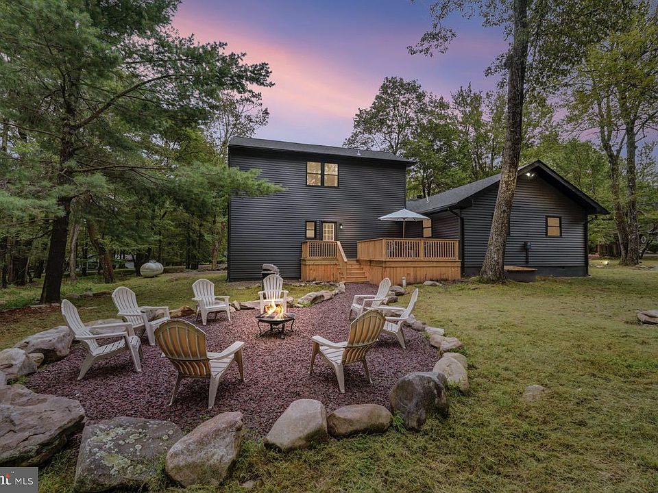 POCONOS FINEST - Elegant Split Rock Retreat! Welcome to your dream home in the heart of SPLIT ROCK, where mountain charm meets modern luxury. NEW ADDITION making 2100 square feet. Full remodel 2025. This 4-Bedroom, 2.5 Bath beauty offers the perfect blend of comfort, style and resort living. Step inside to an inviting open floor plan with soaring ceilings, a cozy stone fireplace, and sun-filled windows framing serene wooded views. The gourmet kitchen boasts granite countertops w stainless steel appliances, & tile floor. The primary suite is your private escape with a spa-like ensuite bath and generous walk- in closet. Three additional bedrooms provide ample space for family, guests, or a home office. Enjoy the Deck and outdoor space perfect for entertaining or simply relaxing by the firepit in nature's tranquility. New siding, new roof, new decks, new HVAC, new window, new flooring, FULL renovation. Located in desirable SPLIT ROCK community (NO HOA), you'll have access to a championship golf course, Cottage club memberships with lake activities, beach, pools, dining, and more - all just minutes from ski slopes, State parks with hiking trails and River Rafting on the Lehigh. Whether you're seeking a year-round residence or a vacation getaway, this home delivers the best of Pocono Living! Furnished Move in Ready, Public Sewer.