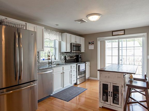 Lovely unit in the desirable Clearwater Estates. This 2 bedroom, 2 full bath unit is move in ready and been lovingly maintained for the last 7 years. As you enter the front door you are greeted by beautiful hardwood stairs to the main living level. Ascending to the 2nd floor leads you to the open concept kitchen and living room. A freshly redone kitchen- Painted cabinets, Backsplash, New Granite counter top and newer Stainless steel appliances. Gleaming hardwood floors throughout this room to the family room. Bright large windows for capturing all of the natural light. Vast master bedroom with good closet space and plenty of room for furniture. Smaller second bedroom or great home office. Full bath with new granite counter top rounds out this floor. Lower level has a bright bonus room with chair rail and shadow boxes and sleek tile floor with radiant heat. Full bath and laundry finish this lovely space. 1 car garage, Central AC and Association paid Irrigation! Welcome Home! This is a 55+ Community. 80/20 Ratio Per the Town of Raymond. Several access points to Lamprey River and Walking Trails. Close to Restaurants and shopping. Showings start at the OH Tuesday 8/17 10-12 & Wednesday 8/18 12-2, No appt Necessary. Offers Due Thursday August 19th at 6:00 pm. Agent is Related to the Sellers.