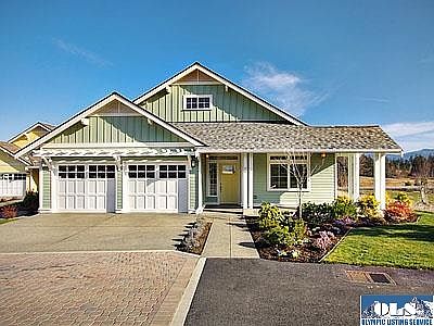 Lovely Craftsman style patio home located in Solana, Sequim! This home is in like new condition + features 9' vaulted ceilings, Hardwood floors + a very spacious kitchen with Granite, gorgeous cabinetry + upscale stainless steel appliances with a Chef's gas oven! Fireplace! Custom closet systems in all closets, 2' white faux wood blinds. This home is light + bright with covered front porch, built in computer station! Great quality! State of the Art CLUBHOUSE! with Pool, Gym, Conference Great room, Kitchen!