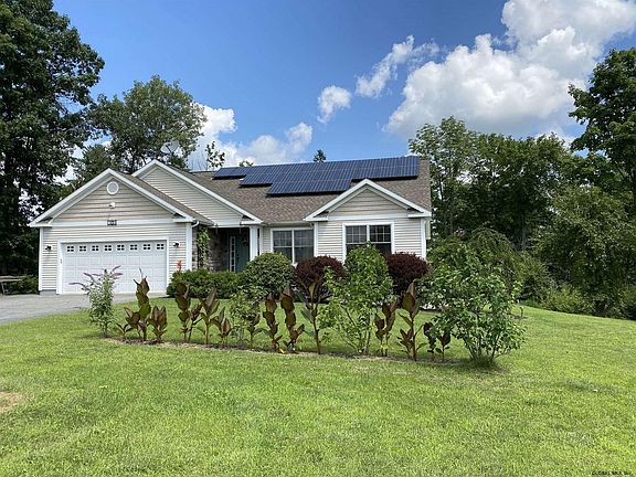 THIS IS NOT A RENTAL. ADS ARE A ZUMPER SCAM. MOTIVATED SELLER! Original owner with many custom upgrades! Ubatuba granite w/stylish tile backsplash; upgraded custom designed kitchen cabinets; Breakfast bar for kitchen dining; Solar panels owned by seller yields VERY low utilities! Nearly 1 acre private lot with vegetable & flower gardens & patio with outdoor fireplace. Fruit & cherry trees, red & black raspberries! 2nd egress from basement to garage. Automatic natural gas generator. MainBR bath with makeup vanity. One of the bedrooms is an excellent home office.