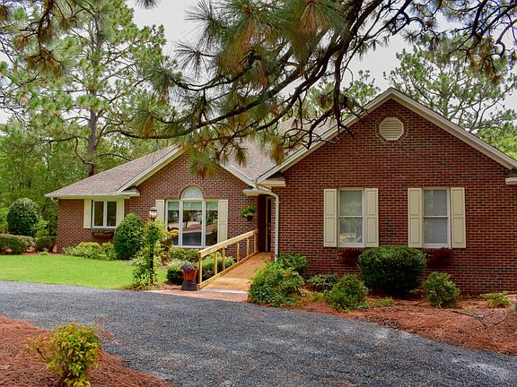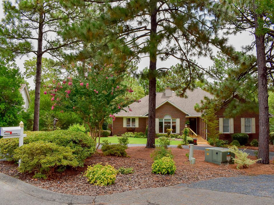 This All Brick, One Level Home at the end a quiet cul-de-sac, is perfectly suited for the buyer looking for privacy, within the town limits of lovely Pinehurst, NC. Home sits on a 'double lot' (0.6 acre) for added seclusion at the end of the street. Located on the 'East' (Ft Bragg) side of Pinehurst, it only takes 10 minutes to reach the Southern Pines-gate of Ft Bragg! The home boasts a split bedroom plan & spacious screened in porch in the back. Fenced in back yard, circular driveway, & side-entry garage are only 3 of this homes' many appealing features. All bedrooms have their own walk-in closets. Presently the Pinehurst CC Membership is attached to the property!