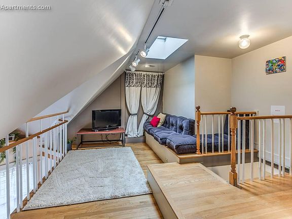 Available 8/1 (July or August lease start flexible): Charming, modern 2 bedroom + study penthouse apartment on the top floor of a professionally managed apartment complex. Beautiful exposed beam ceilings in both the living room and separate dining room. Master bedroom with wall-to-wall closets. Elegant bathroom with extra wide marble vanity and clawfoot bathtub. Renovated kitchen with stainless steal appliances. Upstairs is a spacious skylit living space with a separate bonus room, ideal for an office or storage room. Pet friendly, private balcony, with full laundry room, bike room, and dedicated storage locker in basement. Heat & hot water included. Located on a quiet side street just a few blocks from Harvard Yard and the Charles River. Easy access to Central Square, Kendall, Memorial Drive, and the Red Line. Available August 1st or July. Layout is ideal for couple but could work for as a 3 bed for the right group. - great for families... but maybe not infants as the 2nd floor space is accessible by a steep, narrow climb up.