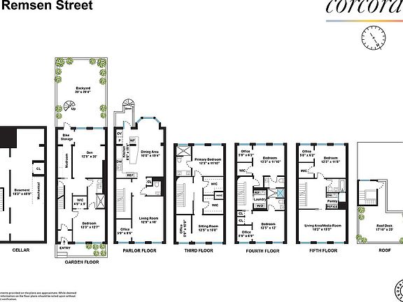 The layout of this home is perfection. Enter on the garden level into a mud-room, perfect for seasonal clothing and stroller ease. A guest bedroom and bath are situated away from the upper floors for privacy, and a large family room in back is perfect for a playroom with easy access to the yard. Keep the toys downstairs while you entertain on the parlor floor. Above the parlor floor is a lavish primary suite with a bedroom in back with garden views, two huge walk-in closets, and a sitting room and study in front. The primary bath offers a spa-like experience with its windowed glass-enclosed walk-in shower, double sinks, Travertine countertops and Bisazza mosaic floors. Head upstairs to the kids' floor where two sizable bedrooms both come complete with great closets AND their own accompanying studies. A Jack and Jill bath designed in Carrara marble is accessible from both bedrooms, offering each occupant their own vanity and lavatory. The laundry room on this floor makes doing chores a breeze. The next floor up features another generous bedroom/closet/study setup in back, while the front has been transformed into a magnificent sitting room, capitalizing on the best views in the house! The full bath shares a skylight with an adjacent wet bar with refrigerator drawers, dishwasher and icemaker for easy entertaining. A dramatic wood and steel staircase takes you up to the roofdeck through a windowed bulkhead. And of course, the view from the roofdeck is a front seat to the best fireworks' displays in all of the borough.
