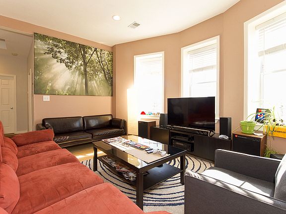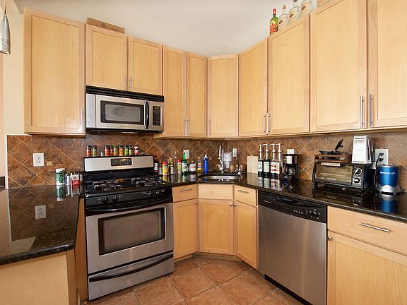 Open kitchen layout with stainless steel appliances, dishwasher, granite counter tops, bamboo hardwood floors, carpeted bedrooms, custom tiles in bathrooms and kitchen. Ensuite master bedroom with jacuzzi tub, HUGE walk-in closet. LOTS of LIGHT with southern exposure, 2 skylights and large windows on 3 sides of the building. Front loading washer and dryer in unit. Central A/C and heat. Large private deck (outdoor space). Quiet, tree-lined street. Convenient location. Steps to Palisade Avenue with direct buses to NYC Midtown (Port Authority). Commute to NYC in 20 mins. Rented directly by owner. WILL GO FAST! Owner pays for cold water and sewer. Renter is responsible for utilities (gas and electric). TVS Credit Report PLUS Criminal Search, and Eviction Search fee: $35.90.