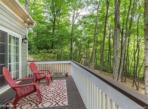 Arts & crafts home is in a pastoral setting among homes on large lots & sits on 1.54 acres with mountain views from each of the 3 bedrooms from a private balcony or deck. Open and light living space with beautiful hardwood floors, master on main, covered porch & a deck the entire length of house. Custom closets, walk-in pantry, granite counter-tops, 2 car attached garage. Second garage is detached for storage, studio or 1 car. 11 miles from I- 40; 17 miles min to Downtown Asheville.