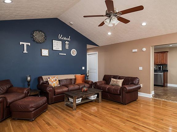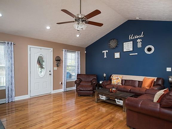 This charming well maintained ranch is ready for a new owner. This home sets on almost 1/2 an acre and features 3 bedrooms and 2 full baths. The first thing that will catch your eye as you come in to the home are the beautiful hardwood floors and stone fireplace that are graced with a cathedral ceiling. Other notable features include: a covered front porch with new maintenance free railing, tiled kitchen and bathrooms, beautiful cabinets with dove-tail drawers, new backsplash, 2 Lazy-Susans, stainless steel appliances, recessed lighting, large primary bedroom with a large walk-in closet, huge utility room, and a deck overlooking the back yard. A side entrance provides additional parking for an RV,Boat, Camper, etc.. Schedule your showing today!