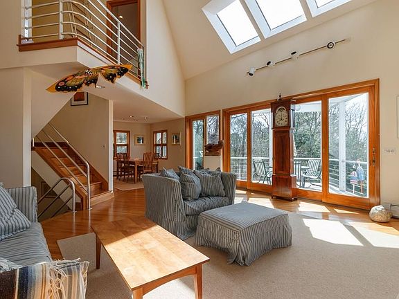 - Liv Dscrp: Ceiling - Cathedral, Open Floor Plan, Flooring - Wood, Balcony / Deck, Skylight, Ceiling Fan(s), Wood / Coal / Pellet Stove