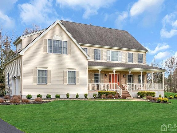 Welcome to this beautifully situated custom colonial located in the heart of Hopewell Township on a quiet cul-de-sac, just walk across the street to the Hopewell Valley Golf & Country Club at Mercer County, offering championship 18-hole golf course, indoor & outdoor dining, tennis, swimming & pickleball. This custom-built home features hardwood flrs, 4 bdrms, plus den/opt'l bedroom on first floor, two-story entry hall, center-island kitchen w/breakfast area & new stainless steel dbl wall oven, refrigerator, microwave & dishwasher, sunken family rm w/masonry gas fireplace & slider to deck, formal LR & DR, large master bdrm w/sitting rm/office, huge walk-in closet, master bath w/stall shower & soaking tub. Full basement, freshly painted interior, new 2-zone heat & air (2019) HWH (2016) laundry rm w/laundry sink & washer/dryer appx 1 yr old, security sys, electric vehicle level 2 Juicebox bran charger in garage, portable generator w/outlet, storage shed. Can accommodate quick closing.