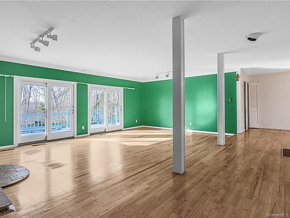 Elegant lines, expansive windows, and generous light define this beautiful home in desirable North Stamford location. Sunlit rooms with generous ceiling heights compliment the one level floor plan which flows naturally for easy living and entertaining. A big, beautiful living room, with a full length outdoor wood deck. The master suite is spacious and warmly sunlit looking over the lush backyard, with a master bathroom. Enjoy privacy around the yard with beautiful sunlight and several areas for entertaining, cooking, and dining. Fireplaces can be seen in living room and sun room. Spacious two car garage and paved driveway. Additional playroom. 2,000 sq/ft unfinished basement for ample storage.