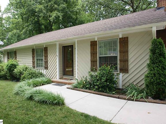 This charming 3 bedroom 2 bath home has numerous updates to make it move-in ready. It is conveniently located near 385, Haywood Rd. and Wade Hampton. The private, fenced backyard is great for entertaining and includes a large deck surrounded by patio, a play house, and a 2 car garage with electricity and storage. This home has a huge combination living and dining room with a cathedral ceiling, stone fireplace and hardwood floors. The rest of the home features 3 bedrooms including a master with 2 closets. Both of the bathrooms have been updated with ceramic tile, new lights and vanities. Don't miss this opportunity for one level living in the heart of Taylors.