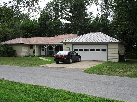 This is a ranch style home in a residential area of Raymondville. High on a hill overlooking the Raquette River. Wooded back yard has steep slope down to the river. The living room is oversized with a stone fireplace. Kitchen has lots of cupboards and counter space. Hardwood floors. Den has knotty pine walls. Large basement. Bedrooms are centered around the bath and laundry room. Nice large entry foyer, Great for receiving guests. Nice yard for the children to play. Garage is detached with a wood stove. Many updates.