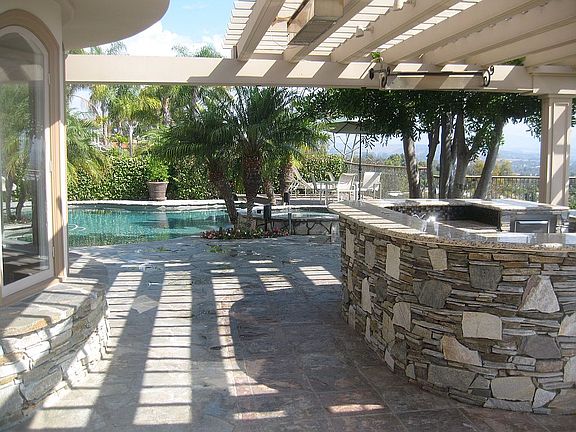 Contemporary style home built in 1990, Structural remodel in 2006 and interior remodel in 2010. Approximately 5886 sq. ft. of living space and a 4 car garage. Located on a approx. 25,000 sf. lot with panoramic views of Saddleback Mtn. all the way to the coast. Home has 5 bedrooms, 5 1/2 baths, including a third floor apartment with separate spiral staircase entrance. There are two separate offices and libraries, one upstairs and one downstairs. Bright, spacious and open floor plan with soaring vaulted ceilings and skylights. Large living room, formal dining room and the family room is off of the kitchen with gleaming mahogany flooring throughout. Gourmet kitchen features top of the line appliances(Sub-Zero, Wolf and Bosch). Gorgeous custom wood cabinets, large center island and breakfast nook area. Back yard is an entertainer's dream. Large pool and spa with dynamic water slide. BBQ and kitchen area with sink and refrigerator. Separate covered area with wood burning fireplace. 30 solar panels provide up to 80% of the home's electrical needs. Topped off with over 6000 sf. of synthetic turf to highlight the beautiful landscaping. This is truly Bear Brand Ranch living at it's best.