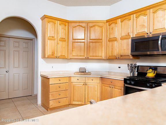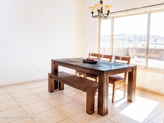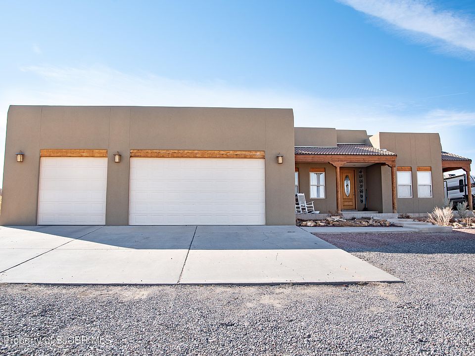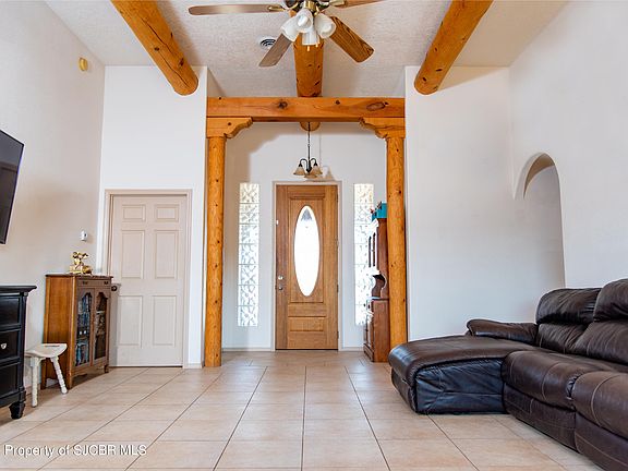 Beautiful Southwestern style home in the Anasazi Estates with pine pole Vegas and kiva fireplace. . Three bedrooms two full baths plus office or formal dining room. Master bedroom suite has a sitting area with outside entrance to covered porch. It also features gorgeous views on 1.2 acres, tile floors throughout, cathedral ceilings with beams, built-in art niches, gas log fireplace, tons of storage space, huge 3 car garage and a cinder block wall around the backyard Refrigerated Air. See private remarks.