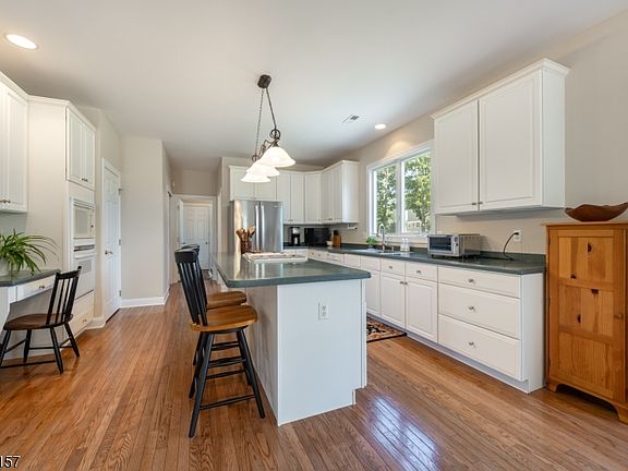 Welcome to 10 Robin Drive, a stately Colonial on a flat corner lot in one of Denville's most popular neighborhoods! The grand double-height foyer, with its curved staircase and catwalk, sets the stage for a home filled with natural light and thoughtful design. The floor plan offers wonderful flow for both everyday living and entertaining. The family room features a cathedral ceiling, wood-burning fireplace and stylish arched windows, while the formal dining room, den, and eat-in kitchen with sliders to the yard create seamless gathering spaces.Upstairs, you'll find four generously sized bedrooms, including a huge primary suite with walk-in closet and spa-like en suite bath featuring 2 individual vanity areas to make getting ready a breeze, a soaking tub, separate glass-enclosed shower, and skylight. Additional highlights include: large windows throughout, main floor powder room, molding details, office, laundry room, rear paver patio, and a 3-car garage. This home combines classic elegance with modern updates in a light-filled, functional layout.