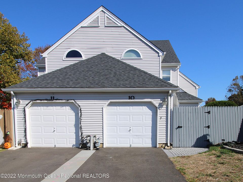 Welcome to the stunning Lyric model townhome in desirable Poets Corner. Nearby to specialty shops and recreation. Upon arrival you are greeted by a newly installed fence and paver patio. The kitchen boasts maple cabinets, granite counters, upgraded appliances, new tile backsplash and flooring. The dining and living area flow beautifully, featuring Bella hardwood flooring and skylight. Through the French doors, enter the den with vaulted ceiling, newly updated fireplace and picturesque view of the grounds beyond the sliders. Upstairs there are two generously sized bedrooms, each with their own full bath. The master features a walk in closet, vaulted ceiling and brand new tub. The heated garage has epoxy flooring. Newer AC, HWH and roof. This home has been very well maintained!