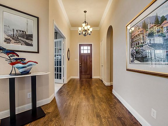 Stunning 5 bedroom, 4.5 bath home in prestigious guard-gated community of Hogan’s Glen. Nestled on a quiet cul de sac with split, side entry 3 car garage! Gorgeous hardwood floors lead into the open floorplan. Gourmet kitchen & breakfast room are bathed in natural light. Custom cabinetry with wine storage, built-in refrigerator, butler’s pantry with wine cooler. Master retreat features sitting room with fireplace, luxurious ensuite bath with custom cabinetry, granite counters, soaking tub & two walk-in closets! 3 generous secondary bedrooms are downstairs plus study & formal dining. Spacious media room with wet bar upstairs plus a guest suite! Beautiful private outdoor space with mature trees & covered patio!