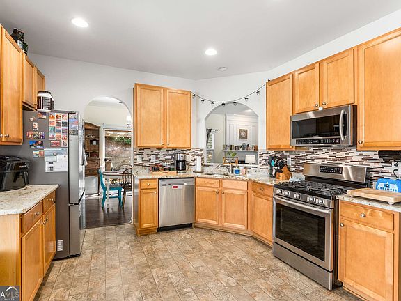 Welcome to 10 Rockridge Drive! This charming home is located in the vibrant Stonebridge community of Newnan, one of the area's most desirable and connected neighborhoods. Enjoy being just a short walk away from the community pool and tennis courts, perfect for relaxing or staying active close to home. Originally designed as a three-bedroom, single-level home, the owners have turned the upstairs half-level into a versatile fourth bedroom-great for guests, a home office, or a playroom. The spacious primary suite offers plenty of room to unwind and even space for an office or craft nook. The primary bathroom features a walk-in closet along with a separate tub and shower. The kitchen has an open, inviting feel with a cutout overlooking the family room, where a large fireplace makes for a cozy gathering spot. There's also a separate dining area that opens up to a spacious patio and backyard, perfect for weekend barbecues or relaxing evenings outdoors. You'll also find a two-car garage and a storage shed in the backyard for added convenience. Located close to I-85, shopping, dining, Downtown Newnan, and Peachtree City, this home offers an unbeatable combination of comfort, convenience, and community. Come see why so many people love calling Stonebridge home!