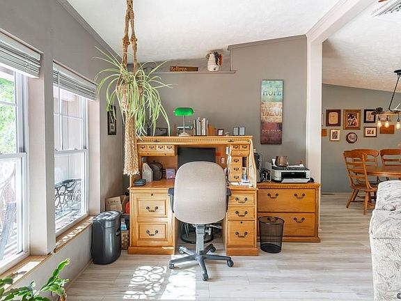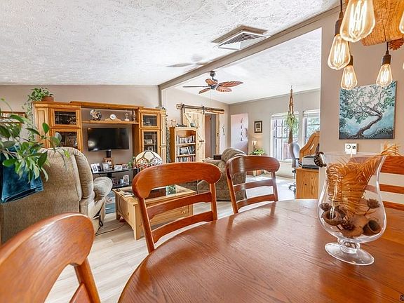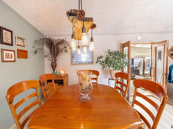 This beautiful 4-bedroom, 2-bath residence boasts a split bedroom design for added privacy and comfort. The heart of the home is the chef's kitchen, featuring Corian countertops, an abundance of cabinets, ample counter space, a large island, and hardwood floors. It's perfect for entertaining and culinary adventures. The primary bedroom provides double closets and an en suite bathroom, complete with a custom-tiled walk-in shower. The secondary bathroom has been tastefully updated with a tile shower and a unique live edge vanity, creating a spacious and stylish environment. Living and dining areas have been updated LVP flooring, adding a touch of elegance and durability. Enjoy year-round comfort in the enclosed sunroom, equipped with a wood-burning stove and air conditioning – a perfect spot for relaxation no matter the season. This property offers outdoor amenities, including four sheds, an oversized two-car garage with pull through design, and an additional workshop with power and water. There's a designated parking are for your RV/Camper with power and water hookups, and a wrap-around driveway for easy access. The outdoor space is a low-maintenance with xeriscaping, a drip irrigation system, and dusk lighting that enhances the property's charm in the evening. Privacy is ensured with a 9-foot live edge fenced property. Don't miss the chance to make this exceptional home your own – a perfect blend of modern convenience, stylish updates, and outdoor amenities!