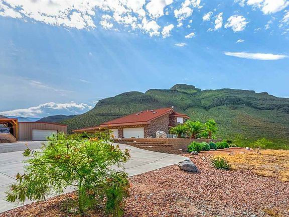 4 bedroom 4 bath home on 7 acres abutting the mountains. Level entry into open living room & kitchen, double kiva gas fireplace. Wolf stainless cooktop, quartz counter tops, custom Ambrosia maple island/breakfast bar. Formal dining area w/ windows to mountain view & covered patio. Guest bath in hall off entry, large laundry room w/ storage. 3 car garage. Upstairs double master w/ double baths. Downstairs 2nd living area, game room & bedroom. 800 yard gun range. RVport, shop. Relocation - motivated seller.