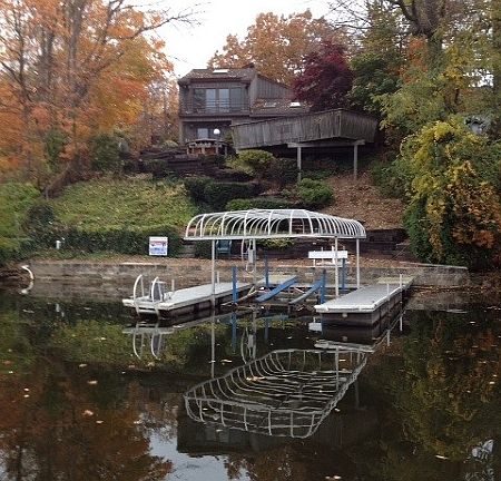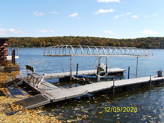 Location,Location, Location- Garage can hold three cars,Incredible master suite, large open rooms, wood and ceramic tile floors, high ceilings, skylights, paver driveway, fireplace,new bulkheadupdated utilities,amazing lighting throughout the home, skylights everywhere, master bedroom has a slate covered deck off of the room, with a glass enclosed shower and jetted tub in the master suite.Every bedroom has lots of closets, natural gas heat, sit in the hot tub over looking the lake, or entertain of one of the many decks or patios at this home, floating boat lift also included with this home! The entry is a greenhouse room with heat and a coat closet too! Must see