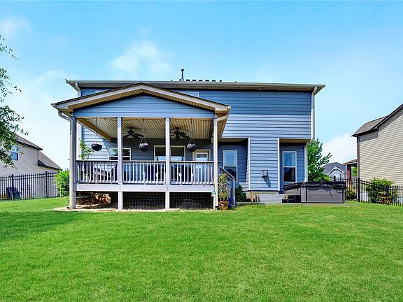 Outdoor living is equally enchanting, with a fenced-in backyard, a covered porch featuring ceiling fans for