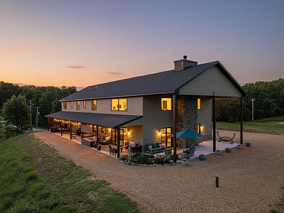 Luxury Lake View Estate with Development PotentialDiscover this extraordinary 13.2-acre luxury estate in the coveted Walnut Springs subdivision in Cape Fair. With over 7,400 square feet of exquisite living space, this home offers stunning lake and wooded views from nearly every room.The open-concept living area is anchored by a spectacular floor-to-ceiling rock wood-burning fireplace, serving as the focal point of the great room. Soaring vaulted ceilings and an inside balcony overlooking the space create a grand, inviting atmosphere. The gourmet kitchen is a chef's dream, featuring an 8-burner gas stove with a pot filler, a large solid-surface island with an eat-at bar, and a convenient butler's pantry with floating shelves and a built-in sink. All appliances are included.Step outside onto the covered balcony to enjoy the peaceful Stone County woods and a majestic, ever-changing view. The home's exterior combines durable Hardie board and stone, creating a timeless and elegant curb appeal. Inside, the primary suite offers a serene retreat with a luxurious walk-in shower, while abundant black-clad windows frame the breathtaking surroundings.Additional features include a dedicated exercise room and a spacious 4-car garage. A significant bonus is the three recently surveyed lots, which present a unique opportunity for future development or to preserve for ultimate privacy.This property is more than a home; it's a lifestyle. Experience unparalleled luxury, stunning views, and incredible potential.