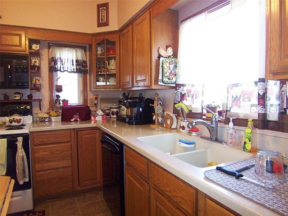 Move in Ready!! Updated kitchen with all appliances, Corian counter top with snack bar. Open floor plan. Convenient first floor laundry and bath with step-in shower. Second floor offers 3 bedrooms, master bedroom with huge walk-in closet, or could be office or nursery, and second full bath. Beautiful natural woodwork thru-out, hardwood floors. All thermal replacement windows and glass block windows in basement. For extra storage full walk-up attic. One car detached garage nice yard. Call now
