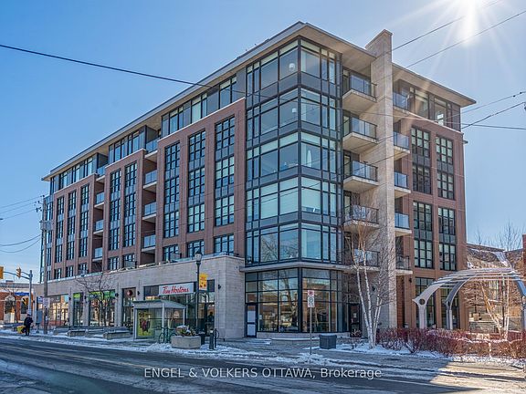 Perfectly positioned in the heart of Hintonburg/Wellington Village neighbourhood, this rare (only 4 in building) 2 bedroom Bethany model, will check off all the boxes and more on your list including underground parking, storage locker plus bike storage. Blending modern design with thoughtful living spaces. This suite offers a visually exciting layout. Open yet well-defined floorplan that perfectly balances comfort and any lifestyle. Providing flexible options for a work from home need or person who loves to entertain this unique floor plan offers versatility. Step into the bright, airy living space and be captivated by expansive west-facing windows that frames a small park, serene treetop & always changing views. High ceilings and full-height windows flood the home with natural light, while wood flooring adds warmth to the rooms. The defined dining space looks out through the balcony providing pleasant dining enjoyment. Enjoy seamless indoor-outdoor living with the west-facing private balcony an ideal spot for morning coffee or unwinding with an evening glass of wine. Overlooking the streetscape of Wellington and courtyard park just below where people gather to chat and enjoy the day. Grow a basket of hanging strawberries to add to your ice cream from Moo Shu Ice cream available in the 1st floor shops. The kitchen is a true chef's delight both functional and stylish, and will be a pleasure to cook in. With all that great food nearby such as the butcher and fine food shop Hintonburg Market just a few minutes walk away. The serene primary suite features the same beautiful window detail and peaceful views. A walk-through closet leads to a modern ensuite bathroom, featuring a large glass walk-in shower and sleek finishes in neutral tones. The second bedroom is generously sized and includes an opaque sliding barn door and double closet. Can adapt to your lifestyle- guest room, home office, or TV lounge. A great lifestyle for all ages.