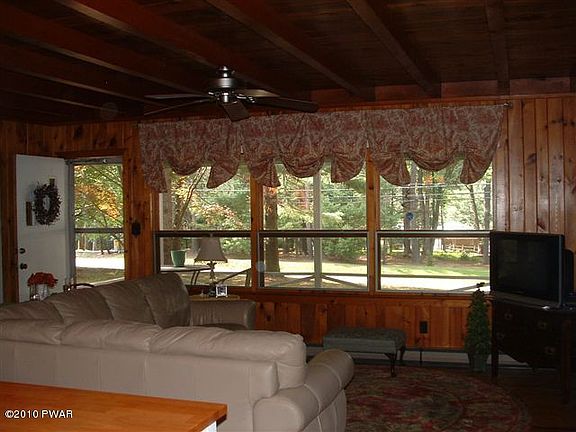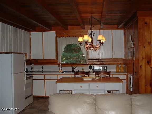 Country charm awaits you in this beautiful ranch w/ attached garage. Home has hardwood floors, open beam ceilings, stone fireplace, 3 season room, 2 bedrooms and one bath. All located within walking distance to Lake Wallenpaupack., Baths: 1 Bath Level 1