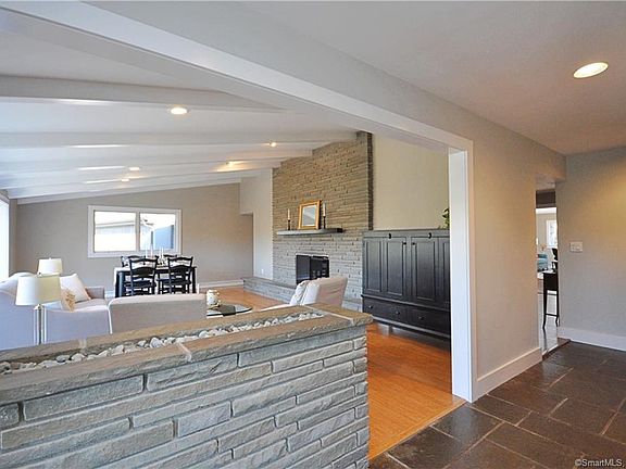 This 1961 Mid-century modern California style Ramblerhome has been completely remodeled keeping the elements of the past while bringing everything up to date with modern features. Large glass windows and open spaces with beautiful new materials integrate modern elements without interrupting the simplicity of this unique home. This housesits up on a private piece of property, overlooking Rowledge Pond with gorgeous sunsets.As you look through the front door you are drawn in bytheopen concept foyer with an originalstone mosaic. The stunning stacked stone fireplace sets the tone, integrating nature and everyday living.The fully renovated kitchen and great room, with hardwood floors and walls of windows offer abundant natural light and access to patios for outside living. Perfect sized bedrooms and a master en-suite thatfeatures a walk-in shower and decorative tile throughout. The finished lower level, an amazing space with plenty of windows, a half bath and a 1950s surprise that will send you back to a simpler time. Simplistic, subtle and modern, you will fall in love with the whole vibe this home creates. The perfect home for the weekend getaway or your full-time residence. Check out the virtual tour for more pics and the addendum for all the upgrades! Upgrades, include; fresh paint in and out, new roof, new septic tank, new well pump, new front walkway and patio's, all new landscaping, all new gutters, 3 new contemporary garage doors, all new exterior and interior lighting, new windows and exterior door, hardwood floors, 2 full and 2 half baths, Brand new Furnace and AC systems, New Hot Water Tank and upgraded pipes for water pressure, Generator hook up in place, Fully finished basement with half bath that could be turned into a full bath. Certificate of compliance for all work that has been completed by the town of Newtown. Association fee $300 per year for access to Rowledge Pond, snow plowing, road repair and general maintenance of the communal areas.