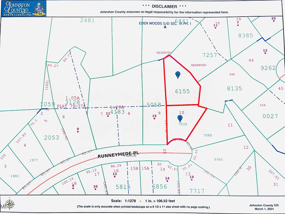 LOT 10 - parcel 15004021N -(Street number has not been assigned yet) and Parcel 14057011 located directly behind Lot 10 sold together. Tax information is for both parcels. Located in cul-de-sac at the end of Runneymede Place. Low traffic street w/ shopping, hospital and schools close by. Most of the lot is in the flood zone (500 yr/100 year and floodway) and is priced accordingly. Contact Town of Smithfield planning department for additional building requirements due to flood zone location. Town of Smithfield is the provider for electricity, water, sewer and curbside garbage pick up. NO Water or sewer taps onsite. Contact Town of Smithfield regarding tap fees. Buyer will need to have survey completed. Fairfield S/D has NO Homeowner's Association. Utility easement on right side of property per plat.