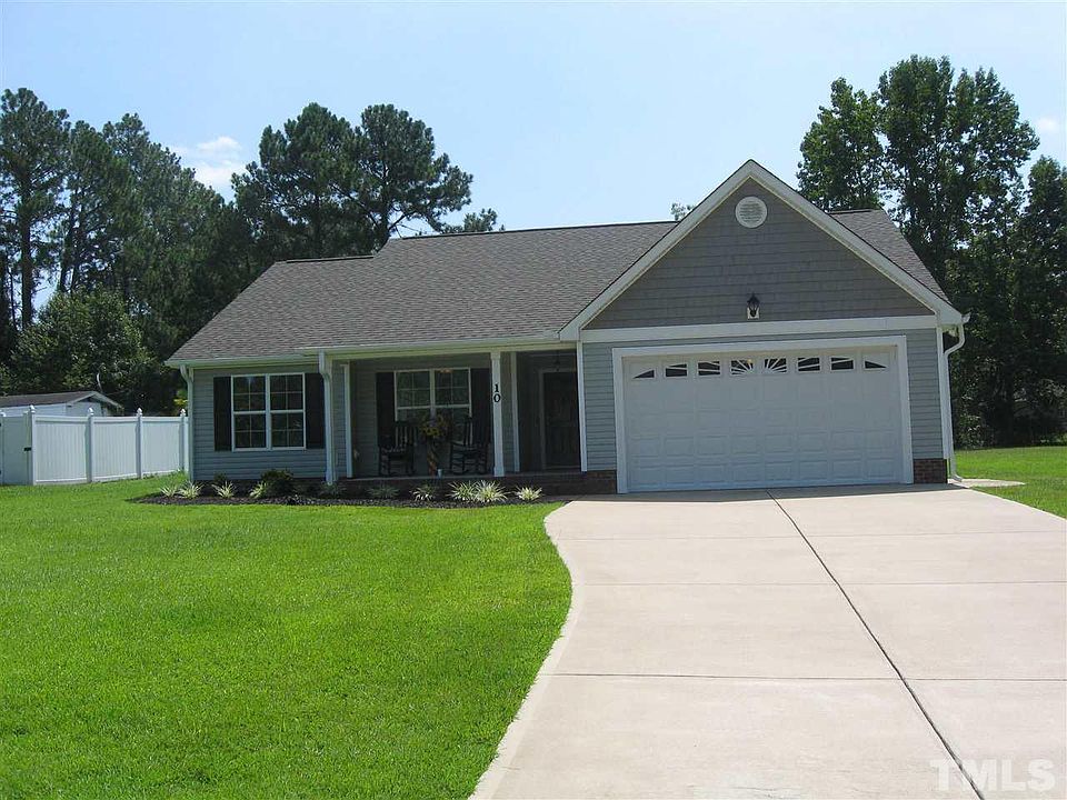 Better than new. Custom built in 2014 with No through traffic in Smithfield, NC. No HOA. Finished 2 car garage, concrete driveway, patio, porch. 3 bedrooms, 2 baths, split floor plan. Hardwood floors with carpet in the bedrooms. Walk in closet & showers. Tray ceiling in master bedroom, cathedral ceiling in living room. LP tank conveys for gas log fireplace & tankless water heater. Washer, dryer, refrigerator, stove all remain. For additional $6000 can be purchased fully furnished except desk. Hurry!
