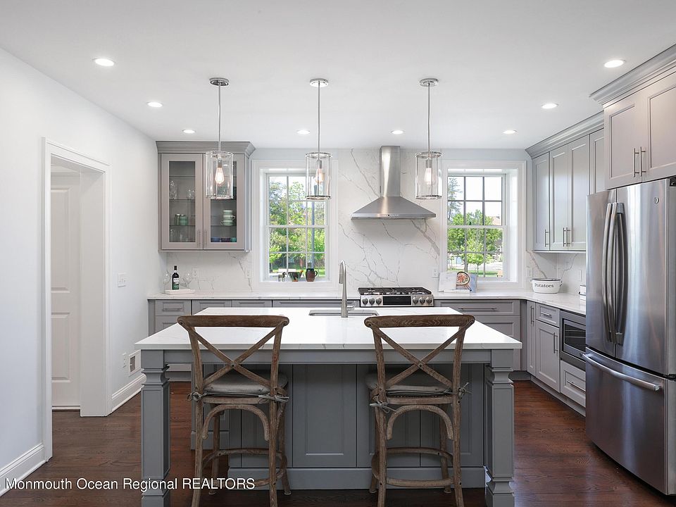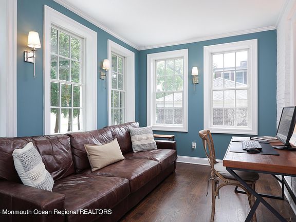 Unlike any other community available! Uniquely positioned between the community gardens, nature trail along Parkers Creek and open space providing a very desirable location. This historically preserved residential community combines a timeless brick exterior with a exquisite modern interior. Upgrades incl oversized quartz center Island perfect for entertaining, 42'' cabinetry, 9' ceilings & oak floors 1st fl, 2-zone TRANE heat & air, sunroom, Mstr BR sitting rm could also be a great office. Andersen windows, Patio, real copper gutters & leaders, pull-down attic, ready-to-finish basement for extra living space. Live a nearly maintenance free life in this spectacular home! A private community conveniently located close to shopping, Little Silver train station & famed NJ beaches