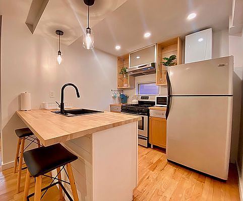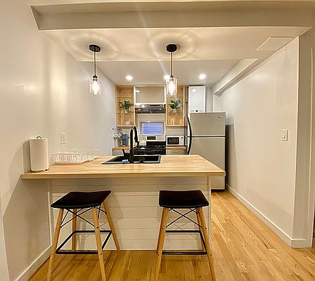 Beautiful 3br on tree lined street in Greenpoint. Don't miss this great 3br apartment w/ large living room, alcove kitchen with butcher block countertops, and 3 private bedrooms. There are hardwood floors throughout and the apartment was just renovated. Located on Russel street, just one block to Mcglorick park and is just a 10 minute walk to the Graham L or Nassau G train. Schedule you're viewing today! Smoking allowed:No