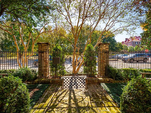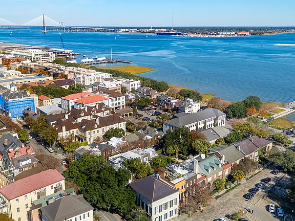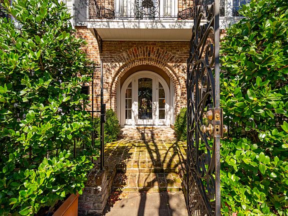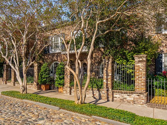 Welcome to 10 S Adgers Wharf, an 1840's warehouse transformed into an amazing three-story home, set back from one of the few remaining cobblestone streets in Charleston. 10 S Adgers Wharf is one of only two properties that fronts both South and North Adgers Wharf. As you step inside the home, a welcoming hallway is flanked by lovely living and dining rooms with a direct view of the magnificent garden. The living room is adorned with original brick walls, reclaimed wooden floors and original exposed beams and reclaimed beams along the ceiling. The spacious eat-in kitchen was designed for effortless entertaining and boasts a charming window seat. This space flows into the wonderful family room that opens directly to the garden. The elegant primary suite features a sitting area, fireplace and balcony that is perfect for enjoying a morning cup of coffee. This floor also features a spacious laundry room and two bedrooms with a shared bath. One of the bedrooms is currently used as an office. The third floor offers two more bedrooms, one of which is very spacious. There is also a large bath on this level and a great room that can be used as an office or media room. Outside, the Loutrel Briggs designed garden was renovated and updated by the current owners under the guidance of landscape architect, Glen Gardner. At that time, an energy efficient geothermal heating and cooling system was designed. Six wells were installed under the garden, and no conventional HVAC equipment is required. As you enter the garden from the rear door of the house, there is a bluestone patio that is sheltered by Confederate Jasmine. This garden is truly an outdoor oasis with an abundance of plantings and greenery such as Palmetto trees, dwarf bamboo, Sago palms and a lemon tree, to name a few. Crushed oyster shells adorn the pathways and brick walls add an additional sense of privacy. Enjoy endless evenings in the garden entertaining with friends while enjoying all that the Charleston weather has to offer. This prime South of Broad location is steps from the Battery, White Point Garden, award-winning restaurants and shopping.