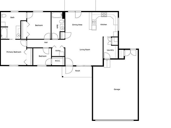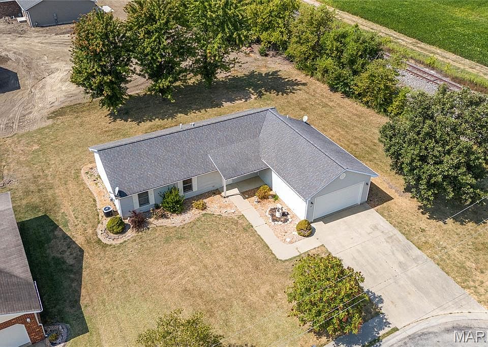 Looking for a nice ranch home to start out in or maybe even downsize into for your next chapter? Well look no further! This ranch home has virtually no entrance steps out of all exterior doors. Including a ramp to enter the house from the garage. Enhancing this house even more as a great place for more people to live, possibly grow old in, or be that spot where more visitors can feel like they can easily stop by. The common area of the kitchen dining and living room has an open floorplan with an 11 ft vaulted ceiling making it feel even more spacious. Kitchen has a breakfast bar and a bonus pantry space just before the laundry area. The main two bedrooms are similarly sized and share the bigger of the two full bathrooms. The third bedroom is more of an office-sized room at roughly 8x8 with a 4x6 closet for plenty of extra storage. Backyard has 14x10 patio and the front porch is 14x6. Railroad tracks are next door, but the tracks have been non routed since 2015ish.
