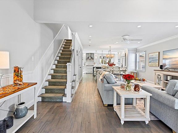Welcome to this beautifully renovated SOUTHSIDE gem, just one block from the beach! This stunning home offers a perfect blend of modern updates and coastal charm, featuring an inviting front porch with an awning, ideal for relaxing and enjoying the ocean breeze. Step inside to an open-concept living space that boasts a high-end kitchen complete with premium appliances, a spacious center island, and sleek finishes. The first floor also includes a powder room, laundry room, and a bonus sitting area which provides direct access to the patio. Upstairs, you'll find all three bedrooms, including a luxurious primary suite with vaulted ceilings, a walk-in closet, and a private en suite bathroom. Enjoy your morning coffee on the private deck, complete with a retractable awning for year-round comfort. Don't miss this incredible chance to own a stunning home in a highly desirable Southside location!