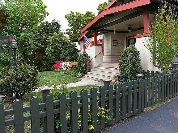 The home begins with an amazing covered front porch with the original tongue and groove ceiling and a more contemporary fan! You enter through the massive oak front door which is also original to the home. The first things to notice are the original, beautifully finished oak floors running through the living and dining rooms; the open floor plan; coffered beams; high ceilings and beautiful natural light. The living room includes a working fireplace with a gas insert. The dining room features the original built-in buffet and French doors leading the enclosed side porch. The well-functioning eat-in kitchen was updated to include a gorgeous glass back-splash; a slate tile floor; a stainless-steel stove and dishwasher and a large pantry. The side porch features updated casement windows and slate tile with an exit to the side of the property. The rear of the first-floor features three bedrooms with antique heart pine floors in the hall, master and middle bedrooms. The first-floor bathroom is large and includes a closet.